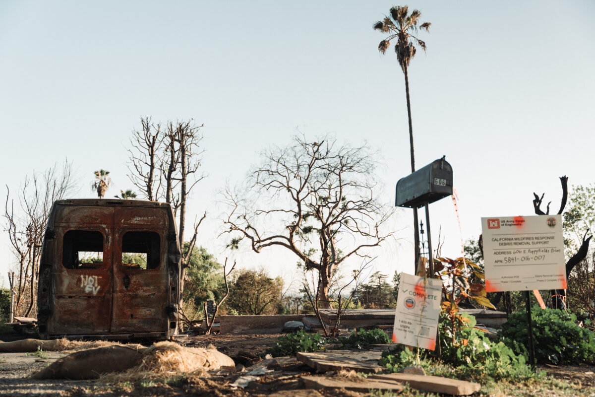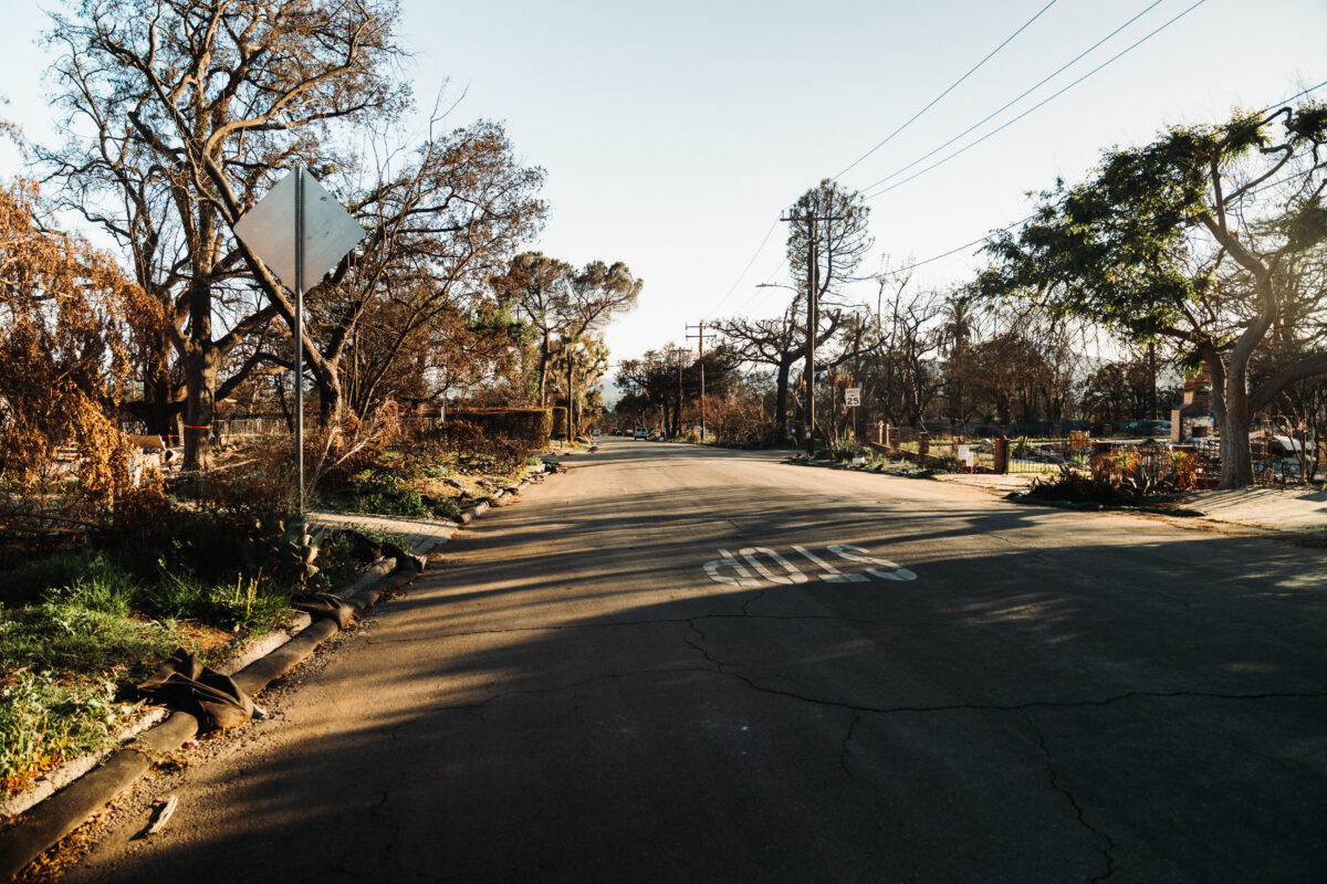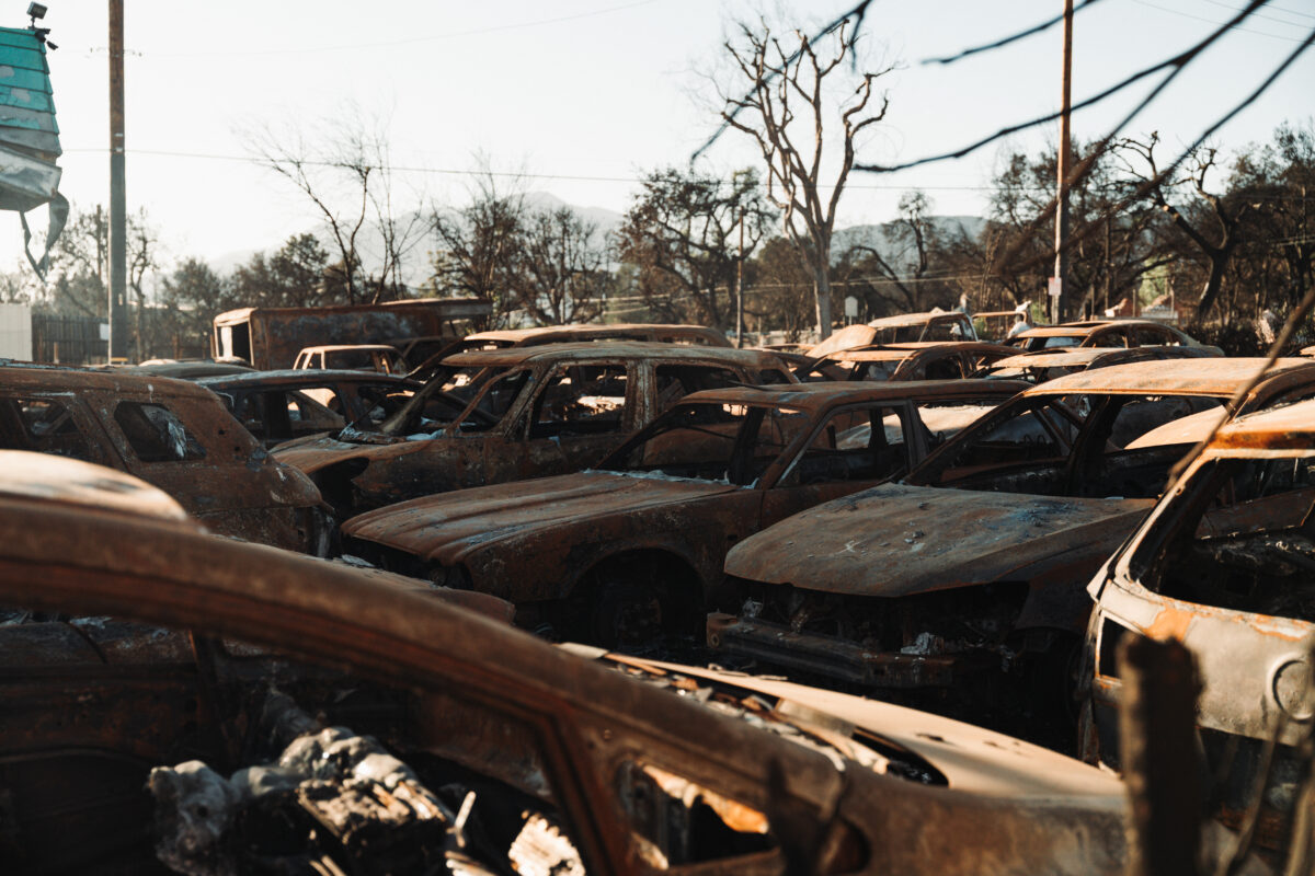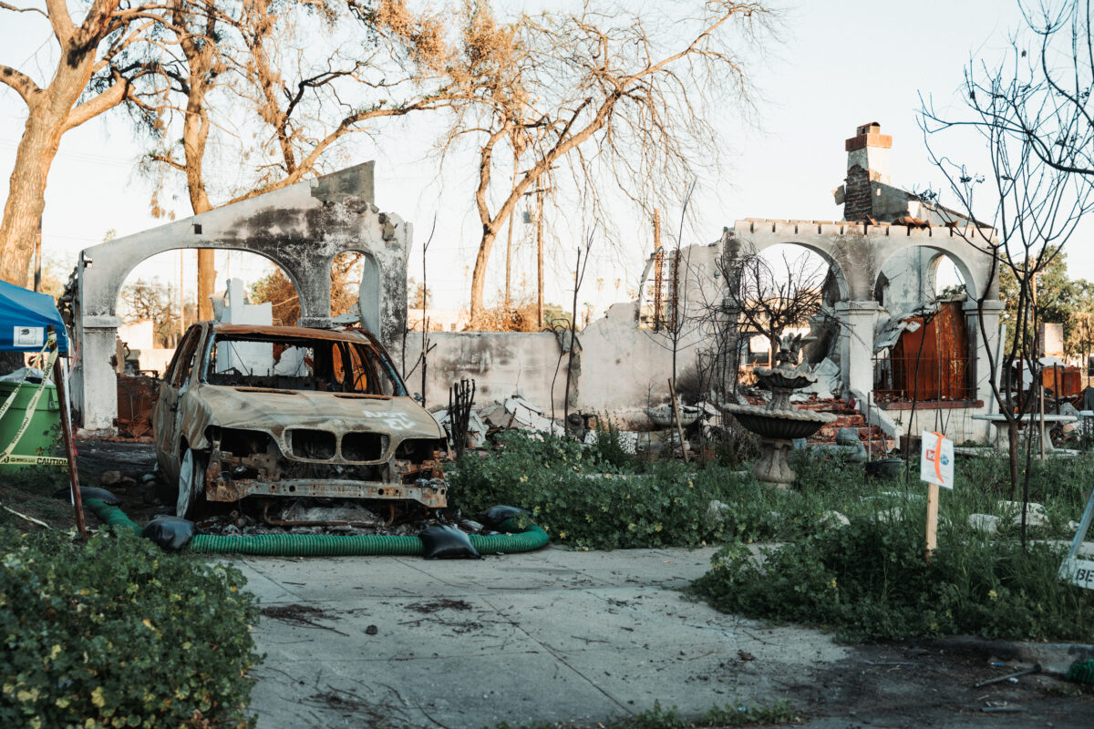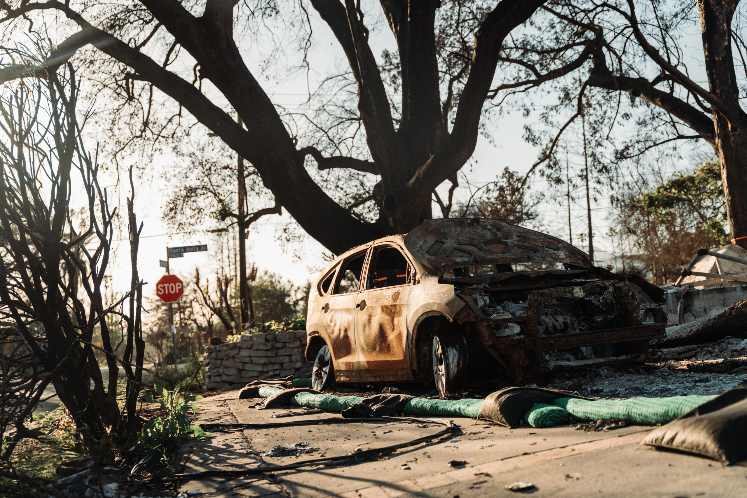 Minęło pięć miesięcy. Udaliśmy się do Altadeny, jednego z miejsc najbardziej dotkniętych przez ogień. Pierwsze, co rzuca się w oczy, to olbrzymia liczba pozostawionych spalonych aut, widocznych na każdym rogu.