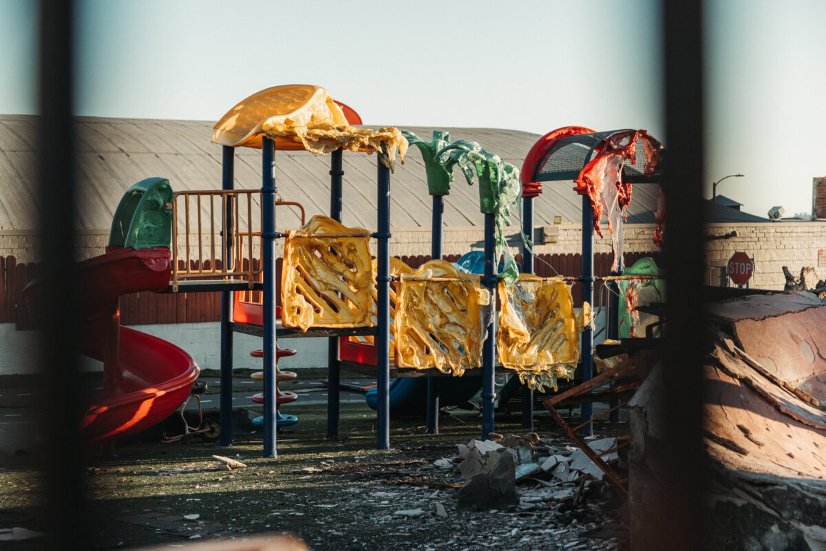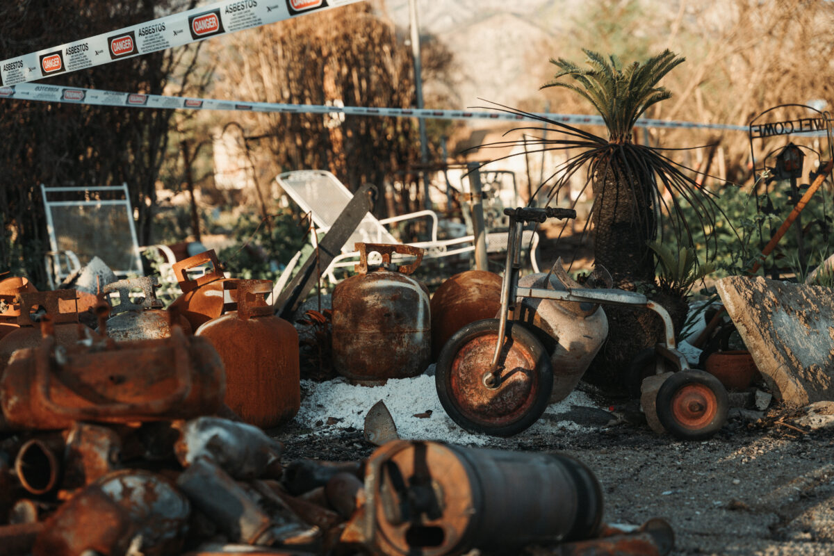 Wyniki badań jakości powietrza wróciły do norm, jednak odnotowano wciąż podwyższone poziomy metali ciężkich: ołowiu, arsenu, chromu i niklu. Niektóre podmuchy wiatru niosą ze sobą drażniący zapach spalenizny. Wzdłuż pustych ulic widać granice ognia. Wypalone do fundamentów posiadłości sąsiadują z domami, które ogień oszczędził.